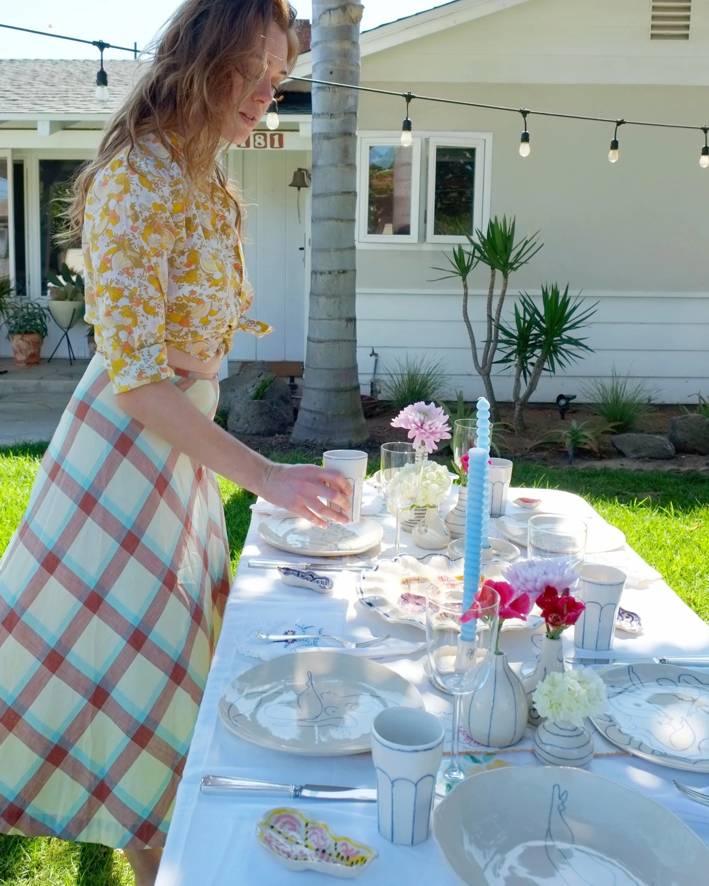 2. For an extra touch of creativity, consider using a special dinnerware set or mix-and-match of unique plates. You can see my dinnerware sets here! For a classic look my Striped set is always perfect, and for a conversation starter my Line Drawn Dancer Set is truly one of a kind.